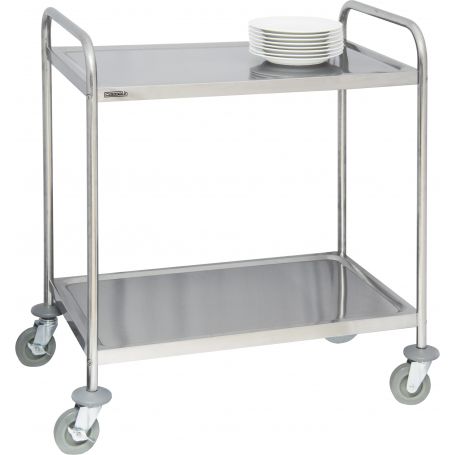 - Trolley in stainless steel- 4 swivelling castors with 2 brakes- Carrying capacity : 120 Kg- Shelf size : W 830 x D 510 mm- Distance between shelves : 570 mm- Dimensions : W 920 x D 600 x H 945 mm- Weight : 10 Kg> Easy to assemble